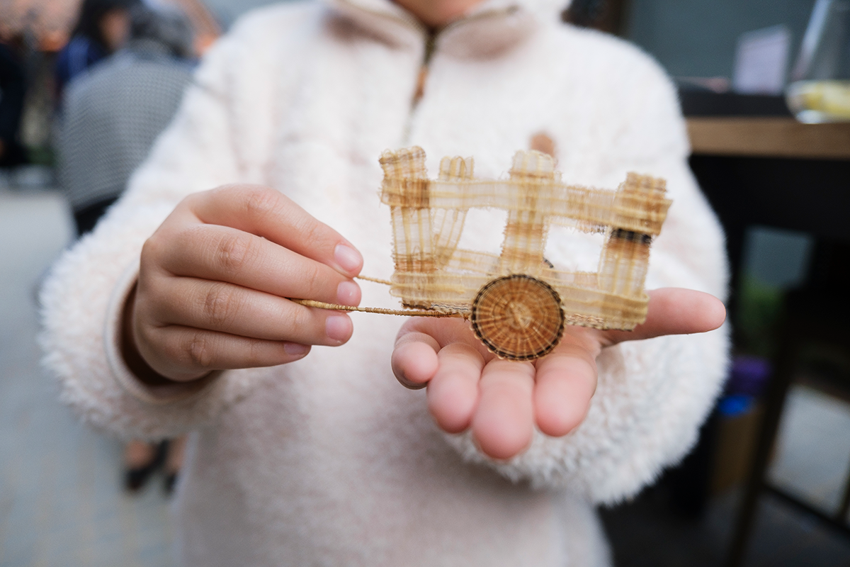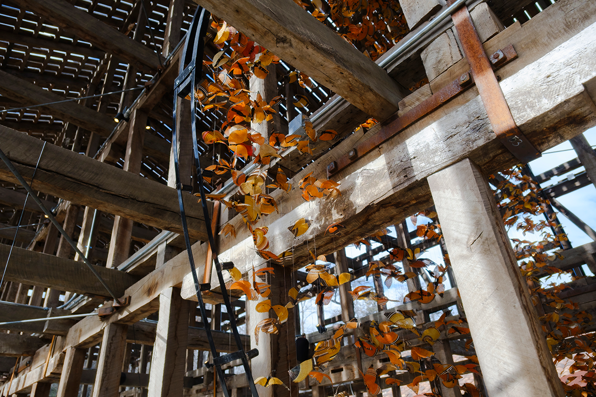 “El tejido en crin y el tejido en madera del galpón dialogan profundamente. Ambas son materialidades de origen natural, frágiles y fuertes a la vez”, comenta la artista visual Josefina Guilisasti, quien trabaja con artesanos de distintas zonas del país. “Este proyecto es un homenaje a las hábiles manos de las artesanas de Rari y al vuelo sublime de las mariposas que habitan el valle del Maipo”, agrega.