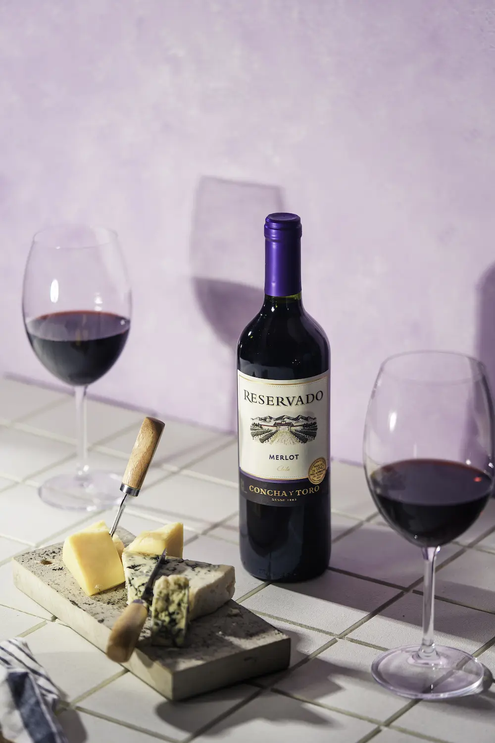 Cultivado em solos aluviais e coluviais do Vale Central, este Merlot é colhido manual e mecanicamente, favorecendo o equilíbrio entre fruta, acidez e textura.